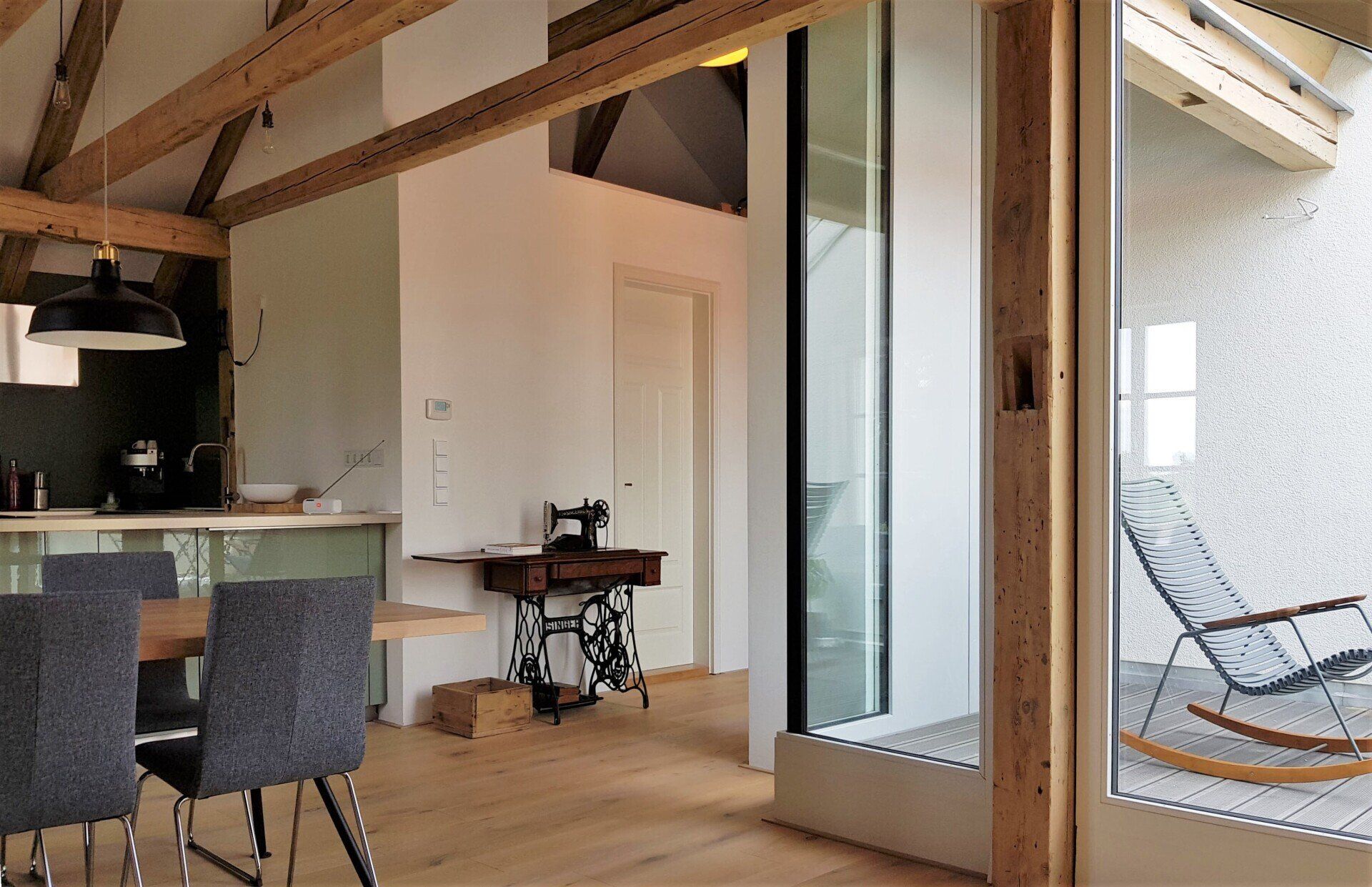 - Erhaltung und Aufarbeitung historisch wertvoller Bausubstanz, z.B. Kastenfenster, Türen, Fassadengliederung, Dachstuhl